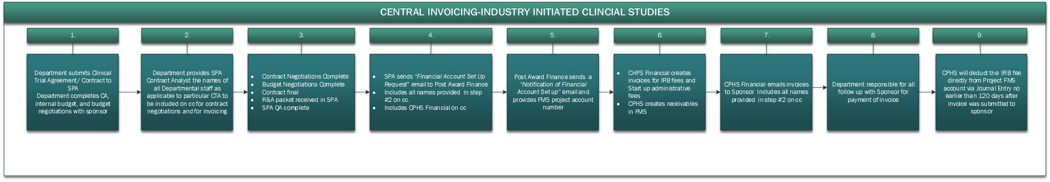 - Administrative Start up fees will be invoiced centrally for all industry initiated clinical studies. (Process Flowchart)
